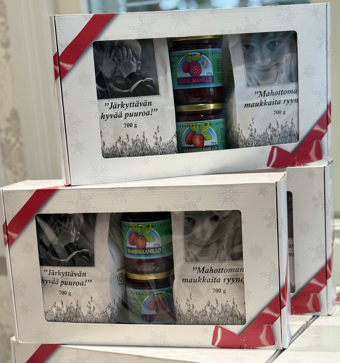 Nyt joulupaketit saatavana. Jouluksi ehtii tilaus viimeistään 17.12. Sisältää Mustakaurahiutale, -ryyni, reseptejä, tarinan sekä Kukkasmäen vadelma- ja mansikkahillon. Hinta 22 e kpl ja isommissa erissä pyydä tarjous markku.ylitalo@multi.fi. Hyvä lahja vaikka työntekijöille jouluksi!